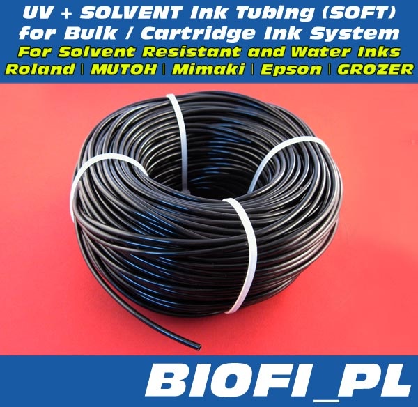 Nowa, ulepszona wersja. Przewody (tubes) odporne na solwent i światło UV, wysoce elastyczne przez co trudno-łamliwe. Dzięki temu tusz swobodnie, bez żadnych zakłóceń będzie zasilał głowicę drukującą. Przewody mogą służyć do przepływu tuszy, do pomp ssących, systemów zasilania tuszem CISS.