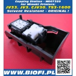 Stacja dokująca z wbudowaną pompą zaciąga tusz z głowicy drukujące poprzez Cap Top podczas procesów zaciągania oraz okresowego czyszczenia. W tym procesie powstaje podsys wymuszający zaciąganie tuszu z głowicy do Cap Topa. Jeśli gumy w Cap Topie są uszkodzone, pofałdowane, nieszczelne to wspomniany podsysys nie funkcjonuje poprawnie i może to spowodować zatkanie dysz w głowicy. Należy dbać o czystość gumy w Cap Topie oraz o drożność przewodów odprowadzających tusz z captopa do kosza spływowego.