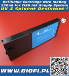 Prezentujemy / We present: Refillable Ink Bag Cartridge 220ml Solvent Kartridż Wielokrotnego Napełniania z wbudowanym workiem na tusz 220ml Do systemów CISS - z Górnym Dopływem Tuszu Odporny na Solvent i Światło UV