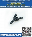 Prezentujemy:(We Present) Łącznik do Rurek w kształcie litery "Y" ID = 1mm (ID = średnica wewnętrzna) Do wężyków o średnicy wewnętrznej 1mm " T " Tube Connector ID=1mm (ID = Inside Diameter) For tubes with an inner diameter of 1mm
